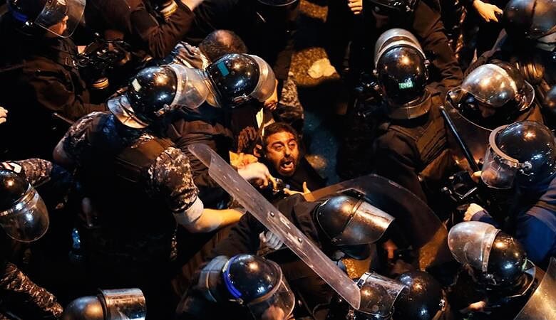 The state-run National News Agency reported that some tear gas canisters had fallen inside the Russian embassy, near the police station housing the detainees.