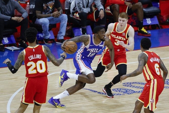 Young, the breakout performer of the postseason, was held to 11 points in the half after scoring 25 in the first half of Game 1. The difference was defense. Simmons, an NBA defensive player of the year finalist, got the assignment in this one after Danny Green was overmatched in the opener. The Sixers were ready for Young: On one first-quarter possession, Young drove the lane and ran into Embiid. Young retreated beyond the 3-point line but was chased down and pressed by Embiid. Trapped along the sideline, Young threw a wild pass that was picked off by Green.