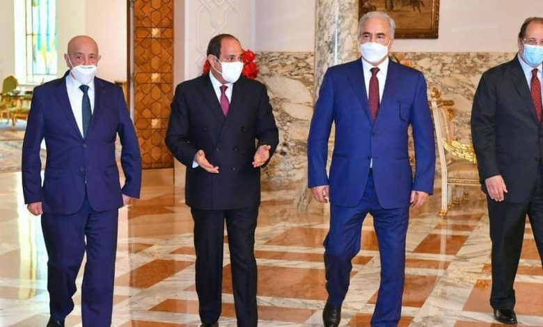 Sisi welcomed in Cairo commander of the Libyan National Army (LNA) Khalifa Haftar and Speaker of the east-based parliament Aguila Saleh.
