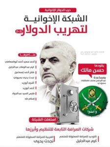 According to the documents, Hassan Malik and his partner Abdul Rahman Muhammad Mustafa Saudi, assigned a number of the organization’s members: Ahmed Saeed Ahmed Abu Al-Muati, Karam Abdel Wahab Abdel Jalil, Faten Ahmed Ismail, Najdat Yahya Basyouni, Ashraf Abu Zaid, Ahmed Abu Zaid, Faris Al Sayed Abdel Jawad, and Islam Taha, to smuggle the money Outside the country via the organization’s Belonging to Brotherhood organization, the most prominent of which are the Tawhid and Al-Nuran Exchange companies owned by the accused Karam Abdel Jalil, and the Western Exchange, owned by the accused Najdat Yahya.