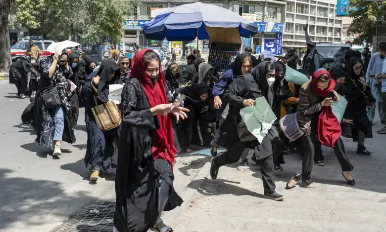 About 40 women — chanting “Bread, work and freedom” — marched in front of the education ministry building in Kabul, before the fighters dispersed them by firing their guns into the air, an AFP correspondent reported.