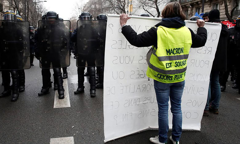 The night before Macron and his wife Brigitte had to be rushed briefly from a Paris theatre after protesters tried to burst in and disrupt the performance.