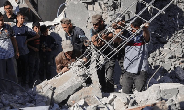 Local sources reported that 10 citizens were killed in Jabalia al-Balad, north of the Gaza Strip, including seven children and women, when the occupation bombed a home belonging to the Azzam family and a kindergarten.