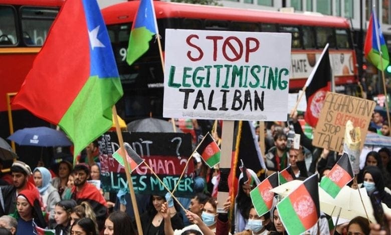 Thousands of people demonstrated in London on Saturday to protest the Taliban’s takeover of power in Afghanistan and in solidarity with Afghans who oppose the de facto authority in Kabul.