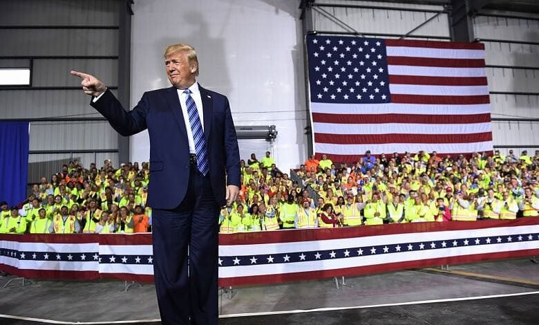 “We will leave if we have to,” Trump told a cheering audience of workers at a Shell chemical plant in Pennsylvania.