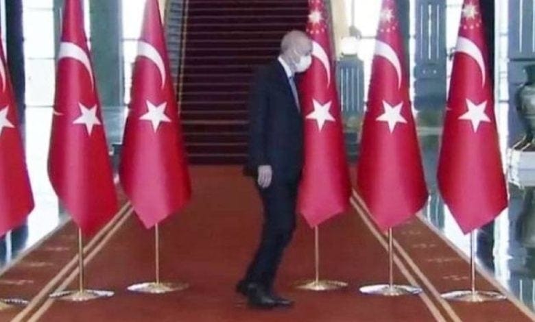 The activists’ tweets came after the Turkish president appeared in a video spread on social media and media, as he walked in a strange way, in which he seemed unable to continue walking to the point that he almost stumbled and fell.
