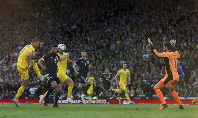 Within four minutes of the second half, Scotland’s mountain to climb got even steeper when Benfica striker Yaremchuk headed in Oleksandr Karavayev’s cross to the back post.