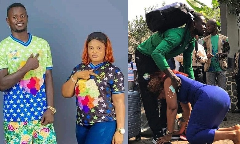 Hawa Tombo appeared in the video, embracing her husband and crying, before kneeling and holding his legs while in a kneeling position, in order to pray for him to shine in the African Cup of Nations, while Moussa Tombo was trying to get his wife up from the ground.