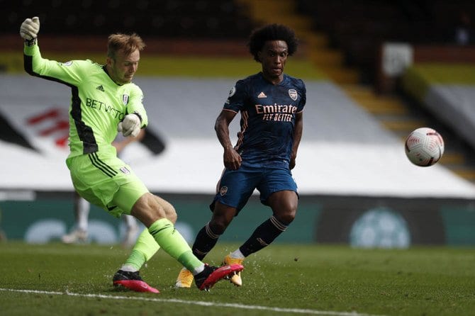 Granit Xkaha’s strike forced a miscued clearance from Tim Ream and Willian pounced with a close-range shot that Fulham keeper Marek Rodak could only push out to Lacazette, who slotted home from virtually on the goalline.
