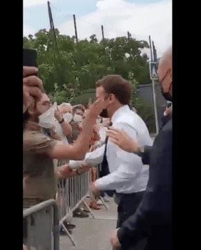 Dans un extrait diffusé sur Twitter, Emmanuel Macron est vu s’approchant d’un groupe de personnes massées derrière des barrières, puis échanger brièvement avec un homme. Saisissant l’avant-bras du président, l’individu semble lui porter ensuite un coup sur la joue, l’entourage d’Emmanuel Macron évoquant une « tentative de gifle ». Le chef de l’État a poursuivi sa visite, a indiqué l’Élysée.