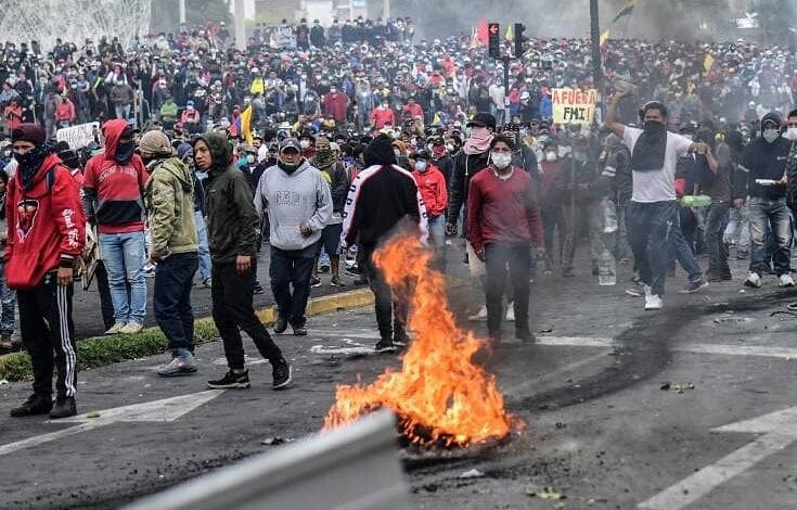 Les protestations en Équateur ont éclaté début octobre et se poursuivent toujours suite à la décision du gouvernement d’augmenter le prix de l’essence en échange d’un prêt du FMI. Les affrontements entre manifestants et forces de l’ordre ont fait en plus d’une semaine cinq morts et plus de 2.000 blessés. Les protestataires ont bloqué les routes, les champs pétroliers et l’accès à l’aéroport de Quito. Ils ont perturbé le travail de nombre d’entreprises et prenaient des policiers en otages.
