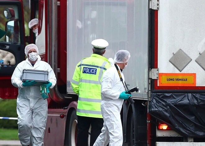 Une enquête a été ouverte après que les services de secours ont découvert les corps de 38 adultes et d’un mineur dans la remorque d’un camion vers 01h40 dans la nuit du 22 au 23 octobre à Grays, à 32 km de Londres, selon un communiqué de la police de l’Essex. La police britannique a établi que le camion était arrivé au Royaume-Uni depuis Zeebruges, en Belgique.