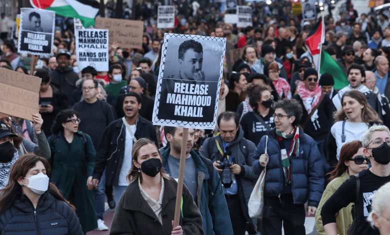 Mahmoud Khalil, titulaire d’une carte verte, a été arrêté le 8 mars par des agents de l’immigration (ICE) après que le secrétaire d’État Marco Rubio ait ordonné la révocation de son visa étudiant et de sa carte de résident permanent.