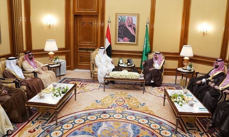 الأوضاع على الساحة اليمنية خلال اجتماع الملك سلمان ومحمد بن زايد بحضور ولي العهد السعودي