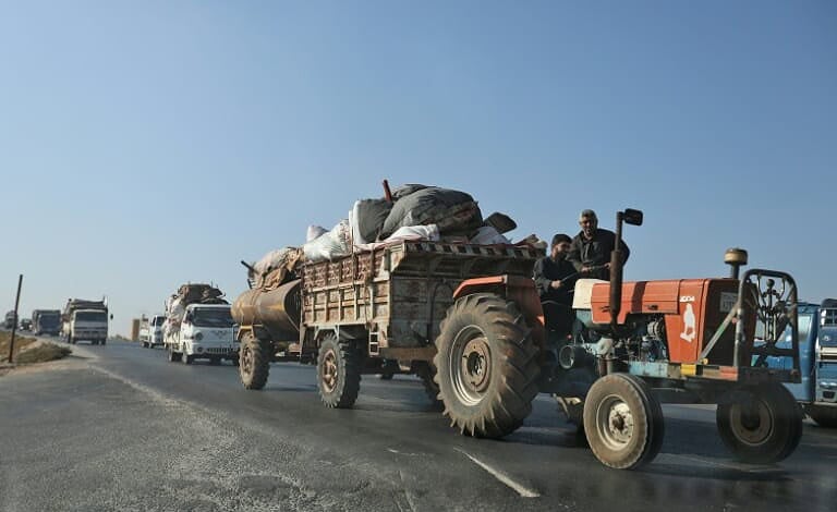 AFP/File / Abdulaziz KETAZA Turkish military convoy heads south towards the Idlib province town of Khan Sheikun, reportedly in an abortive bid to prevent its troops being cut off by advancing Syrian government forces, as civilians flee the bombardmentThe pocket includes the town of Morek and the nearby areas of Kfar Zita and Latamneh.