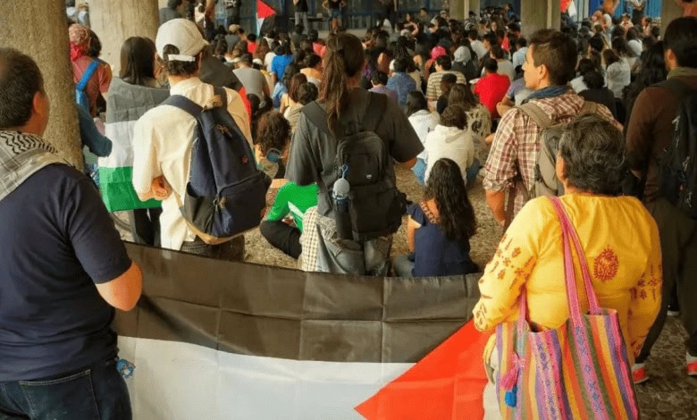 Ils ont installé des tentes et des drapeaux palestiniens devant le siège de l’université à Mexico, où ils ont scandé « Vive la Palestine libre ! » et « De la rivière à la mer, la Palestine vaincra ! ».