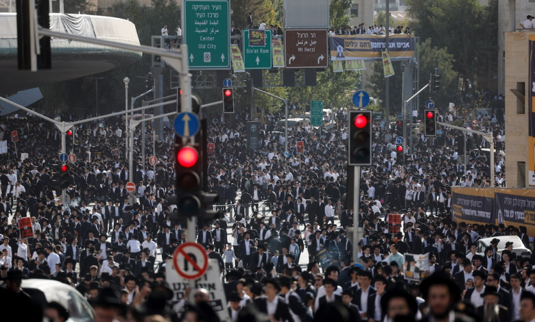 The protest, dubbed the “Million Haredi March”, has drawn attention as hardline rabbis consider ending their support for the ruling coalition and pushing for the dissolution of the Knesset.