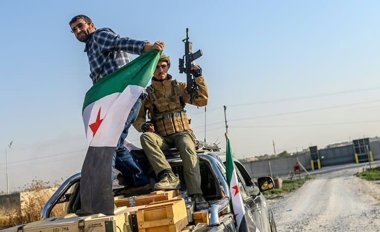 / Nazeer Al-khatibA Turkish-backed Syrian fighter fires during clashes in the border town of Ras al-AinAmong them was Kurdish news agency ANHA’s correspondent, Saad Ahmad. He died in a Turkish air strike on a convoy of vehicles transporting civilians and journalists.