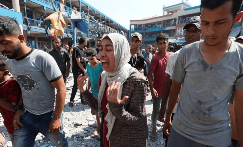 Huit personnes ont été tuées et 48 autres blessées lors d’une autre frappe visant une école gérée par l’ONU et abritant des personnes déplacées dans le camp de réfugiés de Nusseirat, dans le centre de la Bande de Gaza, a indiqué le Croissant-Rouge palestinien.