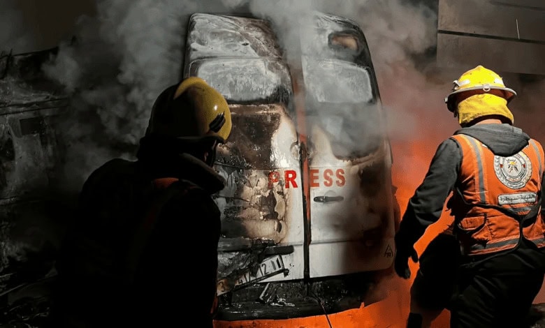 Selon de source, les forces d’occupation ont bombardé un fourgon de télévision devant l’hôpital Al Awda dans le camp de Nuseirat, entraînant la mort des cinq journalistes qui se trouvaient à l’intérieur.