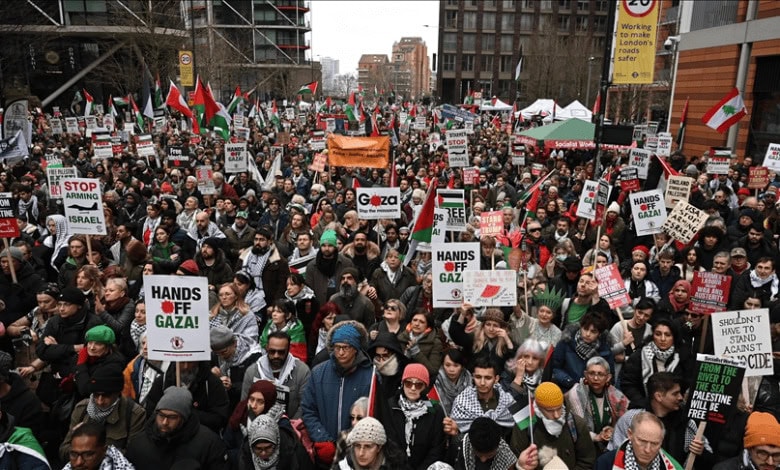 Cette marche à l’initiative de l’organisation Palestine Solidarity Campaign était la 24e dans la capitale britannique depuis la guerre génocidaire lancée par l’entité sioniste contre les Palestiniens de la bande de Gaza après l’attaque anti israélienne du Hamas le 7 octobre 2023.