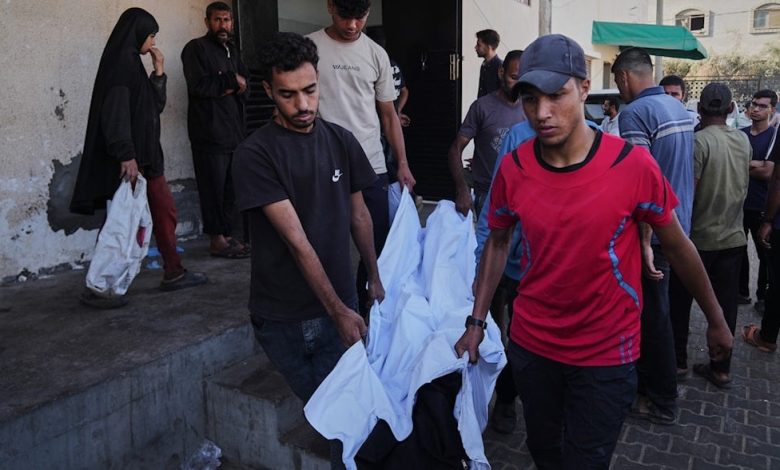 Rescue teams in Gaza City pulled three bodies from the rubble near Palestine Stadium, where heavy strikes had reduced buildings to ruins.